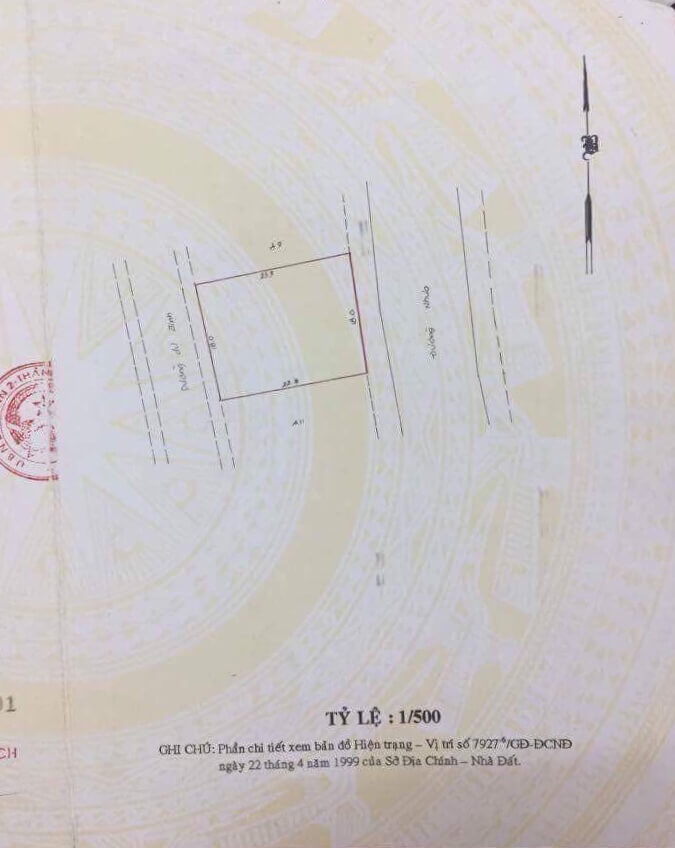 - Diện tích theo giấy chứng nhận 195,7m², ngang 7,39m x sâu 20m (đã trừ lộ giới) nở hậu 8,37m.