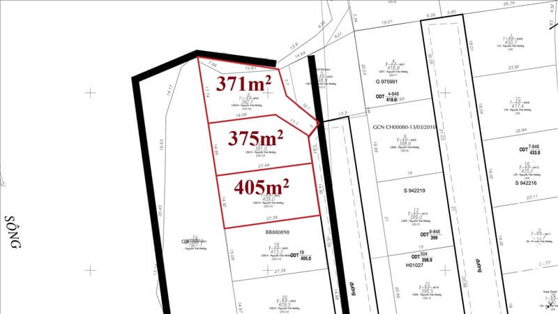 - Đất có diện tích trên sổ 405m² (ngang 15m x sâu 27m) vuông vức, đất đẳng cấp để xây biệt thự. Diện tích thực tế có thể lấy thêm được khoảng 300m² phía sau lưng mặt tiền sông. Và hoàn toàn có thể làm bến đậu du thuyền ra sông.