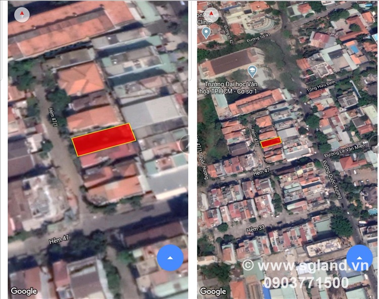 Diện tích 140m² (ngang 7m x sâu 20m), thổ cư 100%. Lô đối lưng ra Đường Quốc Hương, đường trước nhà rộng 7m, nằm gần kế bên hông trường Đại học Văn Hóa. Khu dân cư buôn bán sầm uất, giá bán 150tr/m² (tổng 33 tỷ).