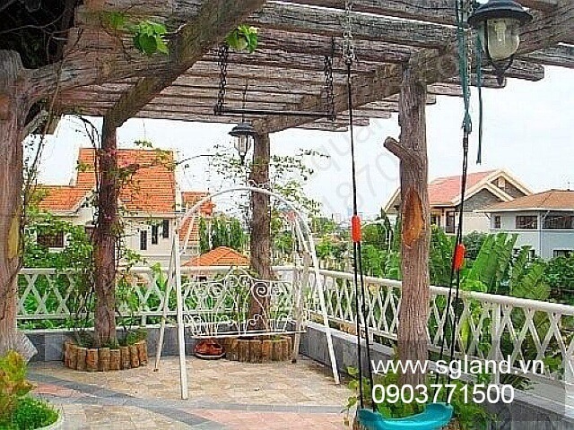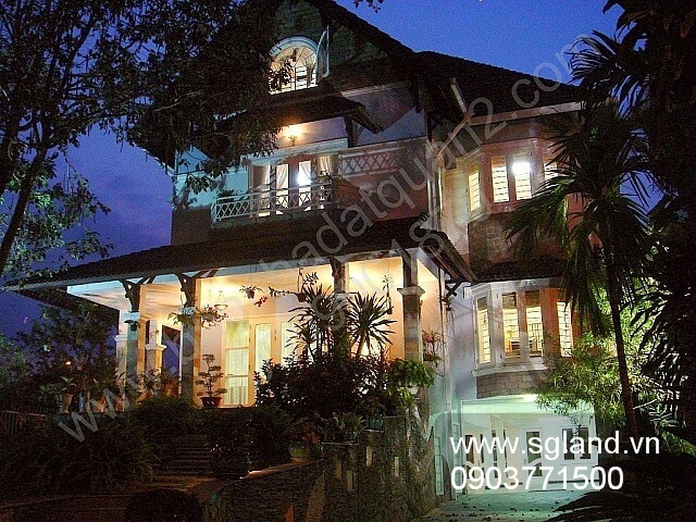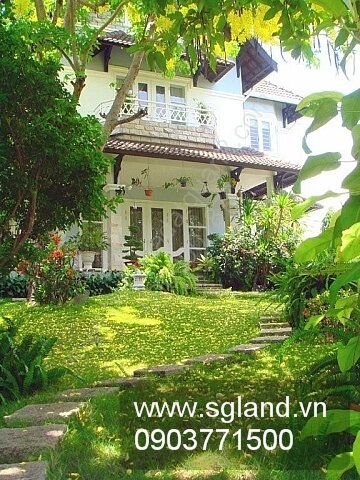 - Biệt thự Thảo Điền bán với ngoại thất là đồi cỏ xanh phía trước nhiều cây to bóng mát hoa thơm, có đèn chiếu sáng lộng lẫy buổi tối, ao sen hồ cá chép với mạch suối chảy bên lối đi lát đá trước nhà.