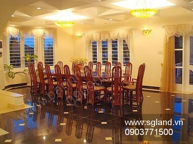 - Bước tiếp lên Phòng Tiệc lớn (bàn 20 ghế) với 4 mặt cảnh quan cây xanh.