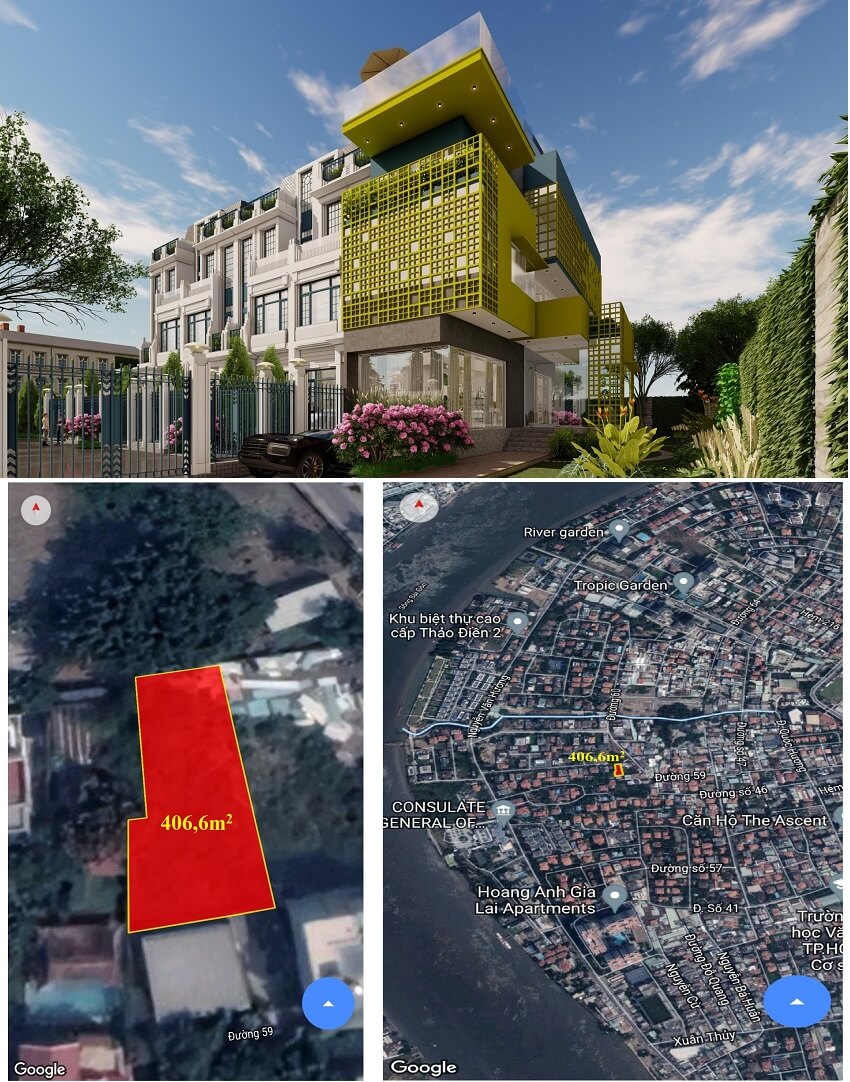 • Vị trí: giáp ranh 2 khu biệt thự Kim Sơn và khu biệt thự Eden Thảo Điền. Lô đất được tách ra từ lô 1300m²;