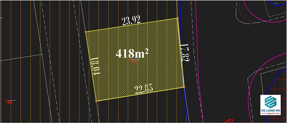 • Diện tích được công nhận trên sổ 418m² (ngang 17,5m x dài 24m).